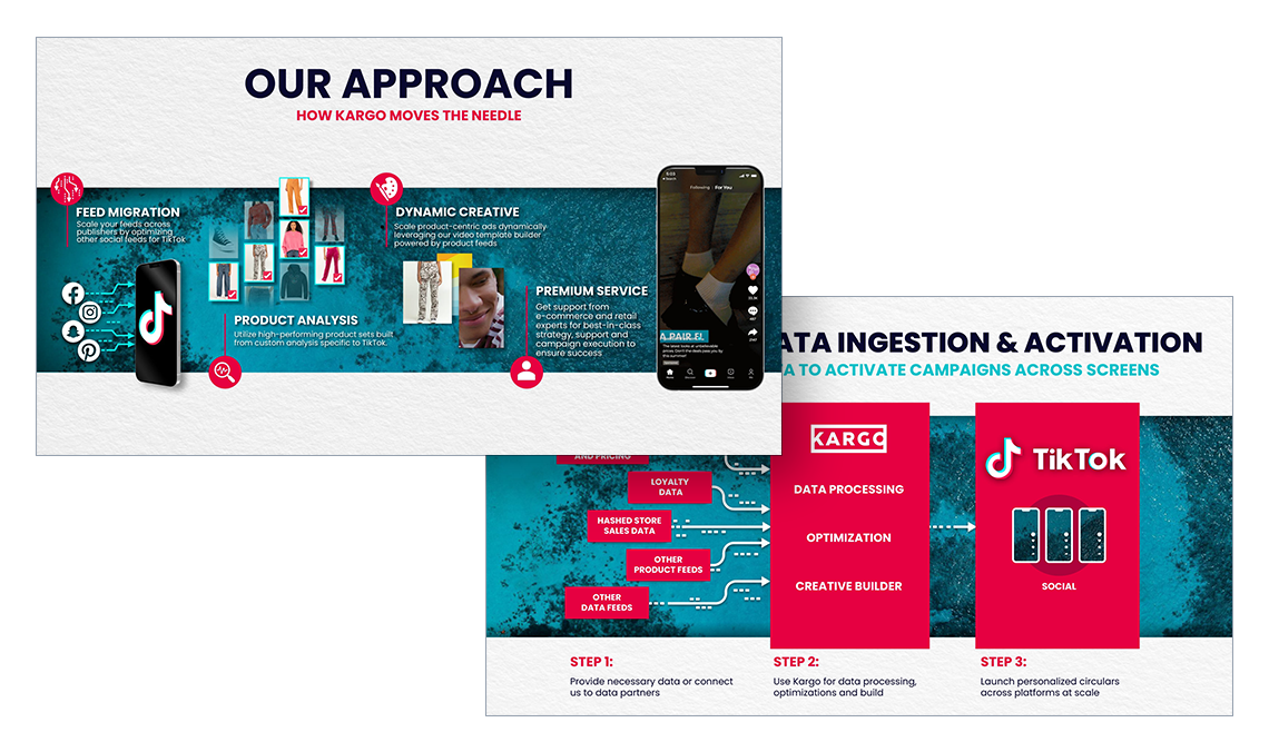 Tony also tackled the significant task of revamping a large volume of legacy StitcherAds content to align with the new brand while supporting the needs of a SaaS platform. This involved creating infographics, technical guides, explainer motion graphics, and growth marketing materials that harmonized with Kargo's overall branding strategy. Stakeholders responded enthusiastically to the new identity, supported by comprehensive brand training sessions Tony led. The rebrand successfully boosted Kargo Commerce’s market presence, allowing customers to associate Kargo’s positive brand attributes with the newly established Kargo Commerce.